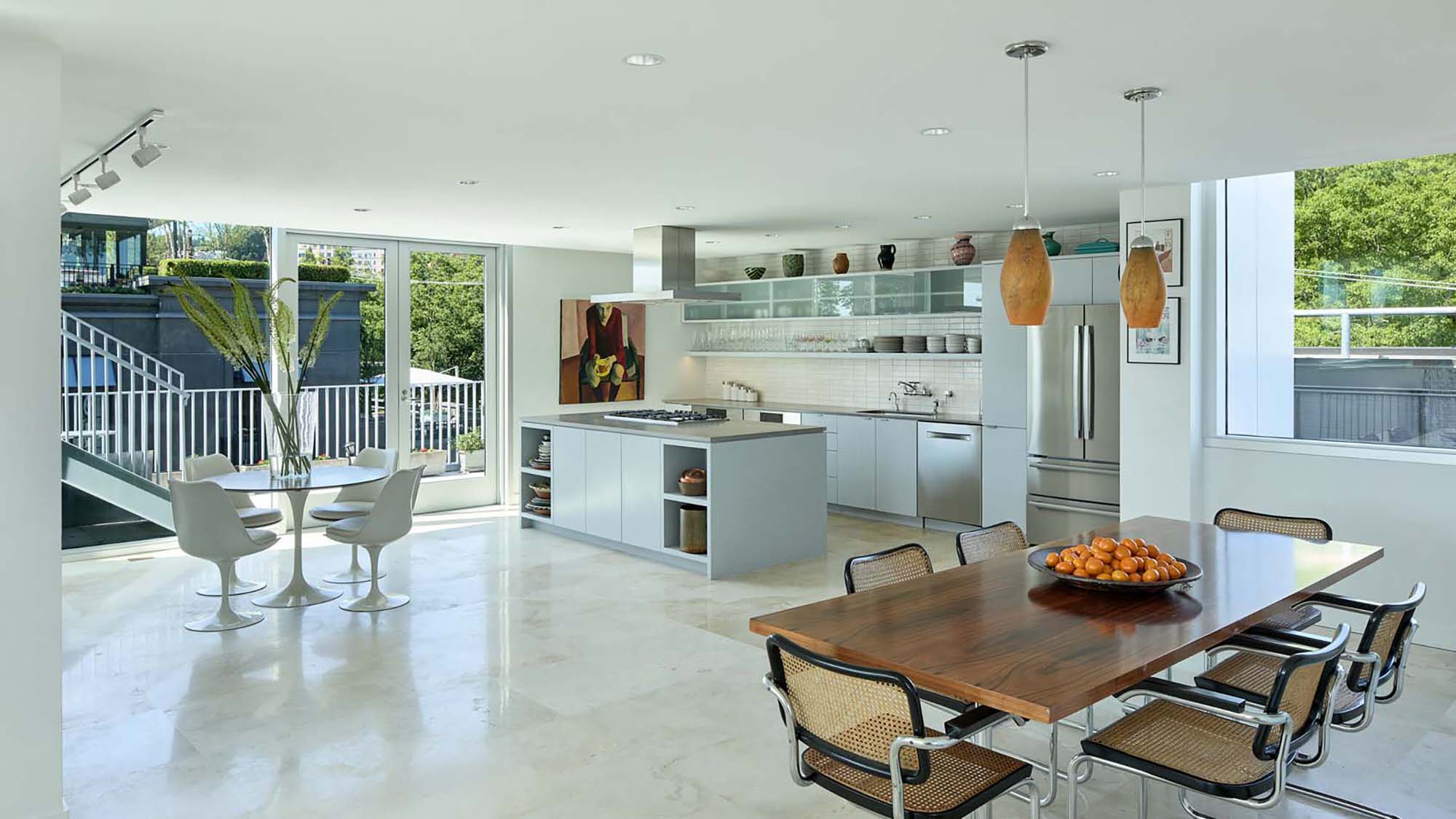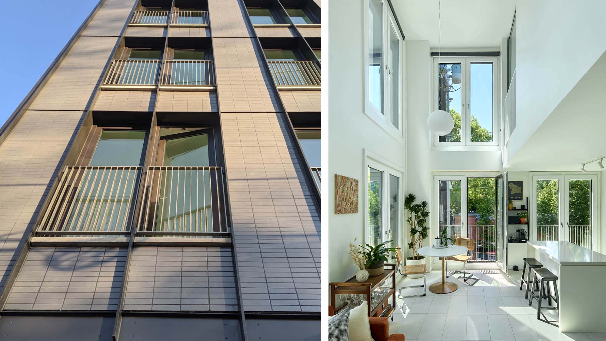 One of the key drivers of 500 NW 23rd was how to best utilize an extremely small and constrained site, and to do so in a way that would create genuine value and distinction within Portland’s “Alphabet” Historic District. A single retail space at ground level houses Smith Teamaker’s newest location and offers visibility from multiple approaches, with near continuous glazing and a wrap-around metal canopy for all weather protection. Above, five residential units are spread across three levels, including three double-height units that provide generous light, space, and airflow within a compact footprint. The building is wrapped in an “Umi” series Japanese glazed porcelain tile and a rhythmic pattern of projecting metal fins, which also include the full-height casement window and “Juliet” balconies. Overall, 500 NW 23rd balances timelessness and quiet elegance with innovative details and features that bring new energy and amenity to one of Portland’s oldest neighborhoods.