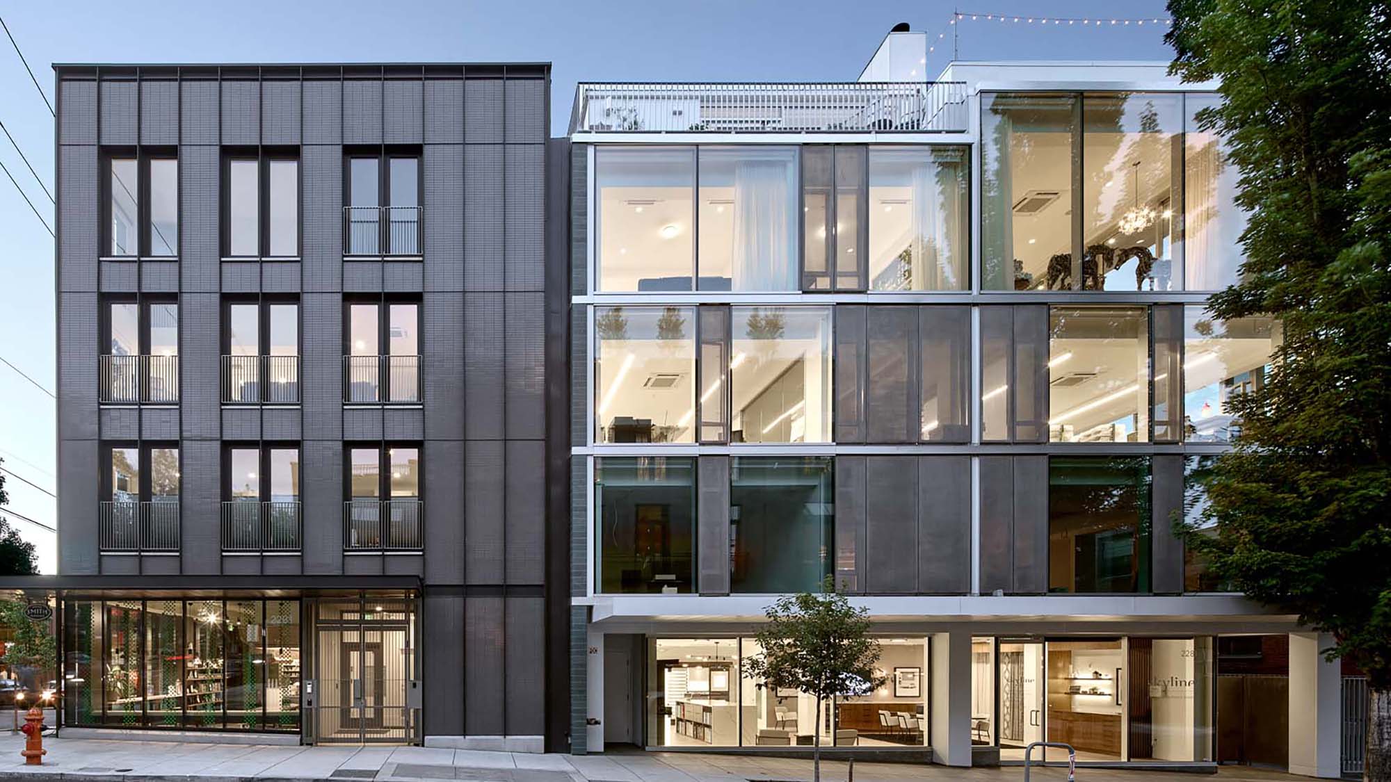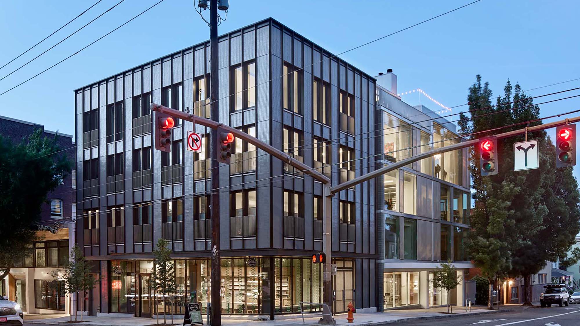 Five years earlier, a gas leak from a neighboring construction project caused an explosion that led to the complete destruction of the original wood frame structure on the site and major damage to 2281 Glisan Street. The misfortune turned into an opportunity for Allied Works to revitalize one of the firm’s earliest and most innovative projects and propose a new infill building on the prominent corner lot.