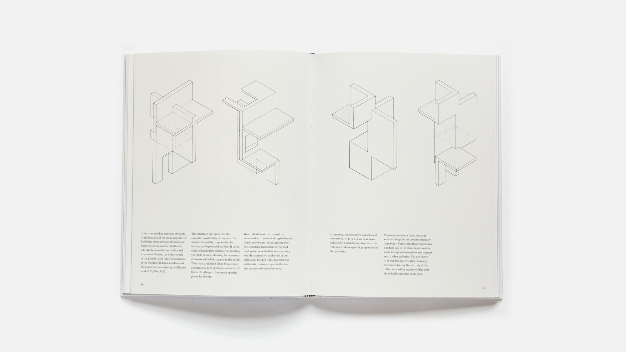 The book features previously unpublished photographs and documentation of the design process, including conceptual and study models, drawings, details and digital studies, as well as essays by Brad Cloepfil, Dean Sobel, director of the Still Museum, and Robert McCarter, writer and professor of architecture at Washington University of St. Louis. The book was designed in partnership with Juliette Cezzar in New York City and produced by German publisher Hatje Cantz Verlag.