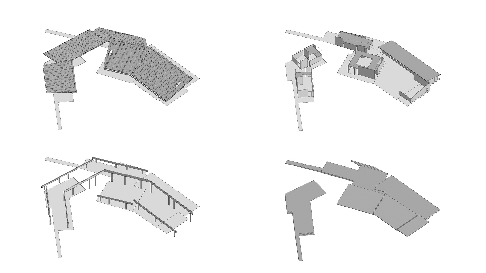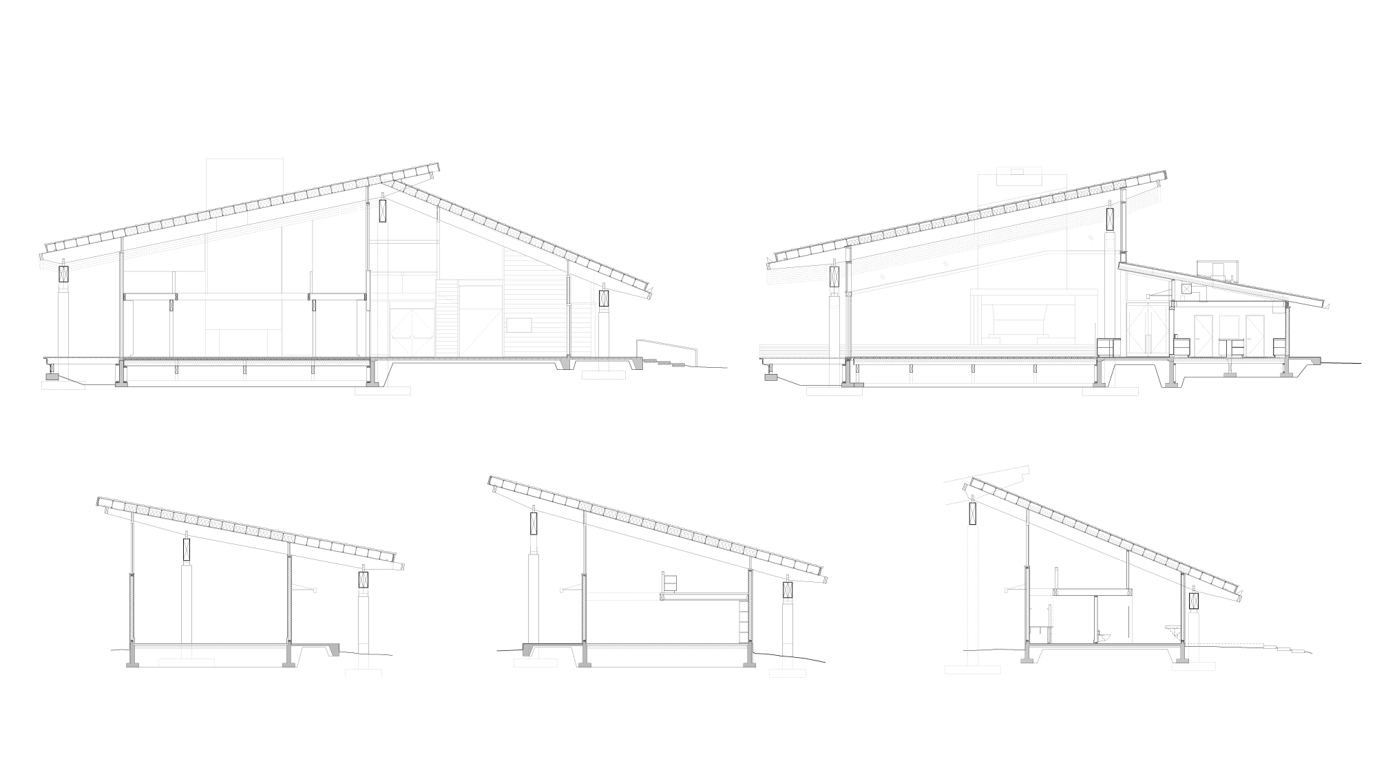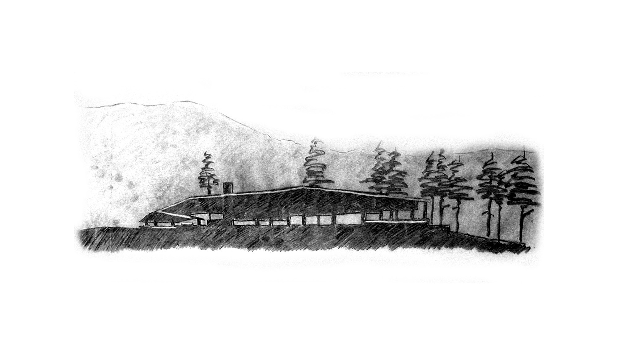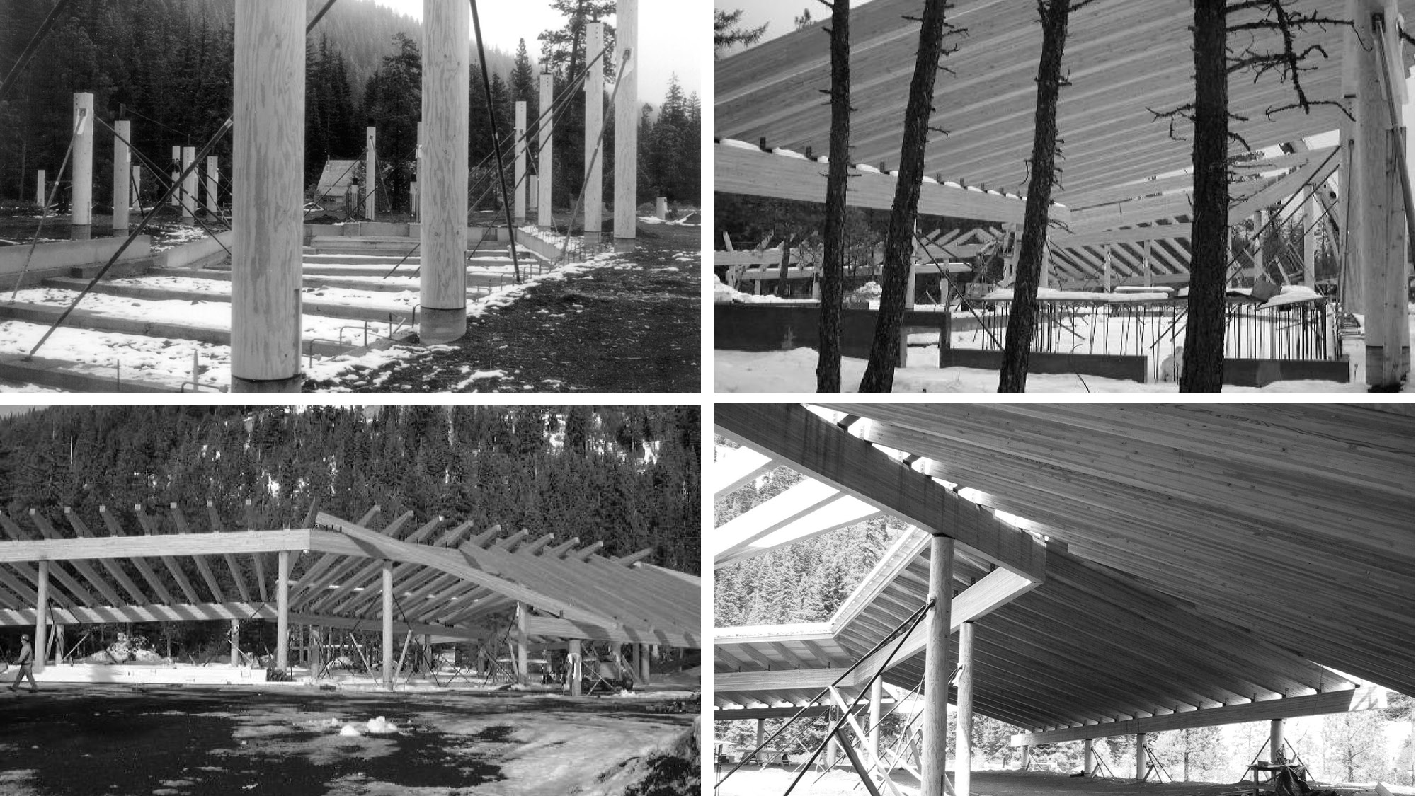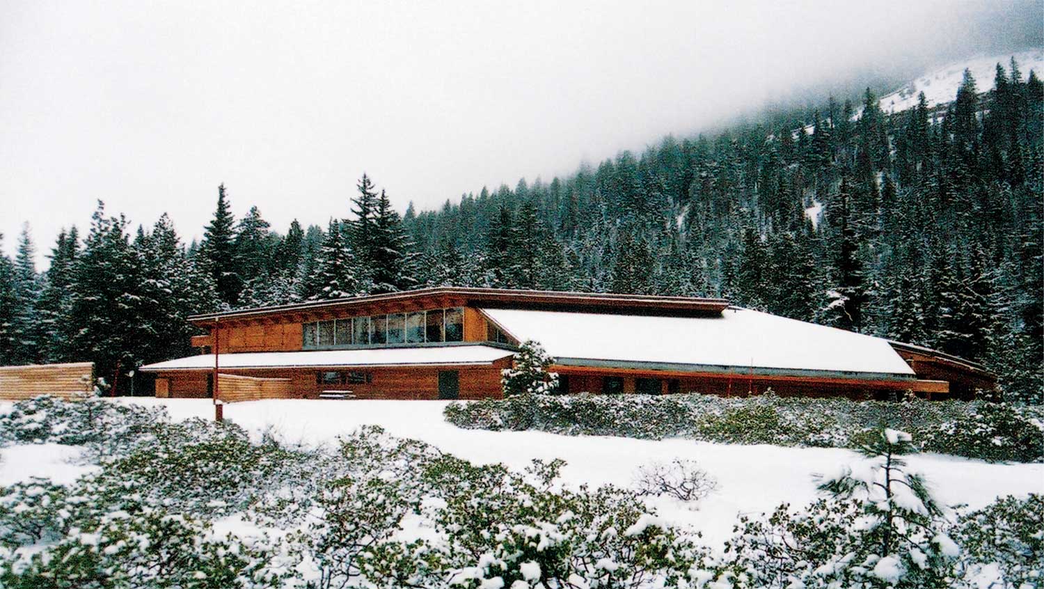 As part of this mission, Caldera operates a year-round center for the arts and environmental interpretation in the Cascade Range on the shores of Blue Lake. A constellation of residential structures, workshops and campsites, the Center focuses on a multi-use structure known as the Hearth Building. Completed in 2004, the building gathers the central functions of Caldera under a cedar-shake roof anchored by two monumental concrete fireplaces. Its crescent shaped plan is organized as several interlocking wood platforms. Three separate enclosures rest lightly on these platforms, allowing the multi-purpose performance hall, library, and art studios to open to sheltered space, light, ventilation and views on all sides. The Hearth Building echoes the form of the surrounding volcanic crater and the material and structure of the enclosing pine forest, creating a resonant space for education, gathering and artistic production.