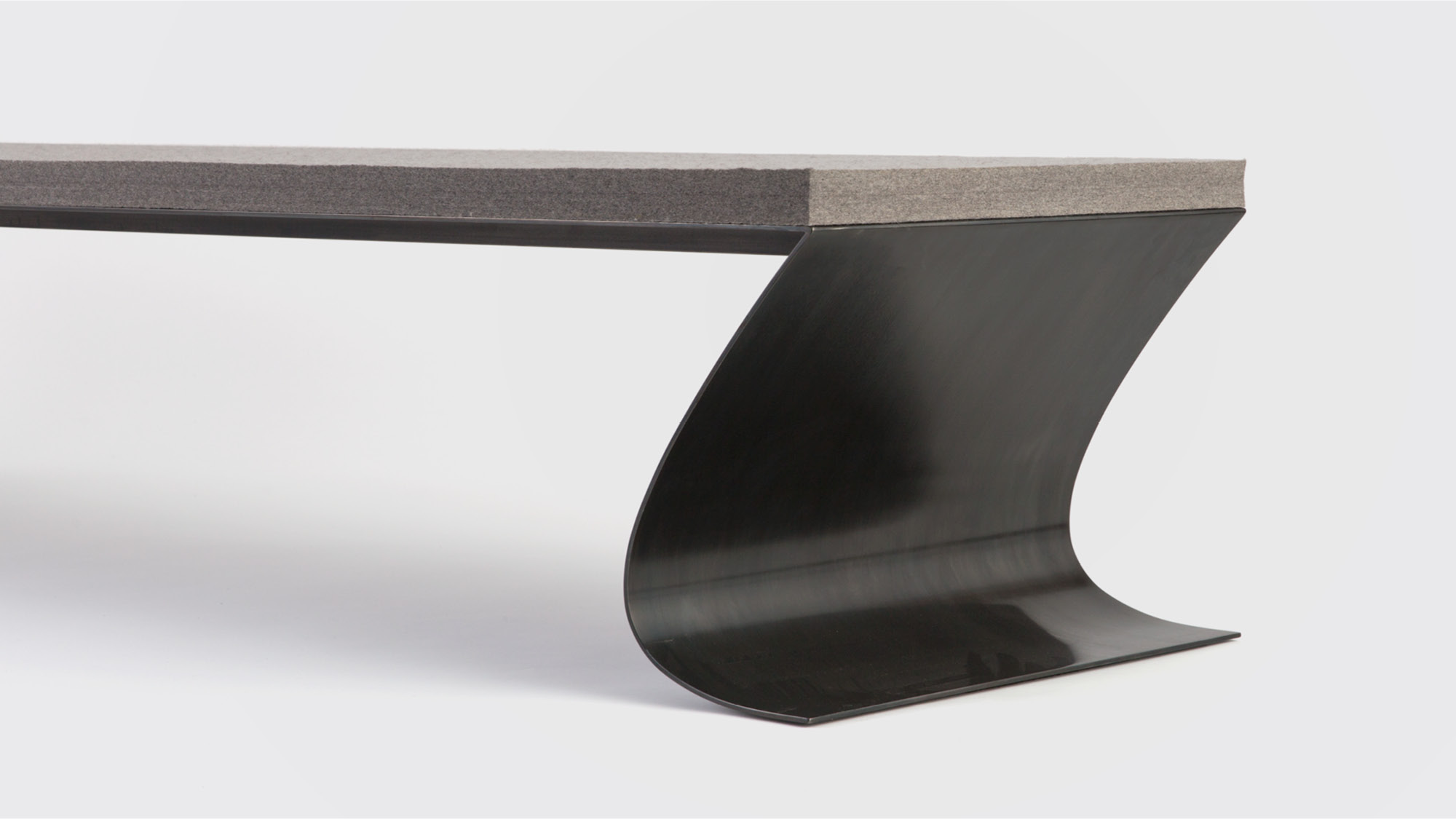 The Still Bench provides for moments of respite and contemplation in the presence of Clifford Still’s work. Their simple and elemental design was inspired by the level of refinement in materials and making processes achieved by the museum itself. Topped with un-dyed wool industrial felt, a continuous structural steel surface marries taut and sinuous lines, echoes the horizon, and responds to the force of gravity without overpowering the space around it. The bench has since been re-produced and installed in the Uniqlo City Creative Headquarters in Tokyo, and will be featured in the National Veterans Memorial Museum in Columbus, Ohio.