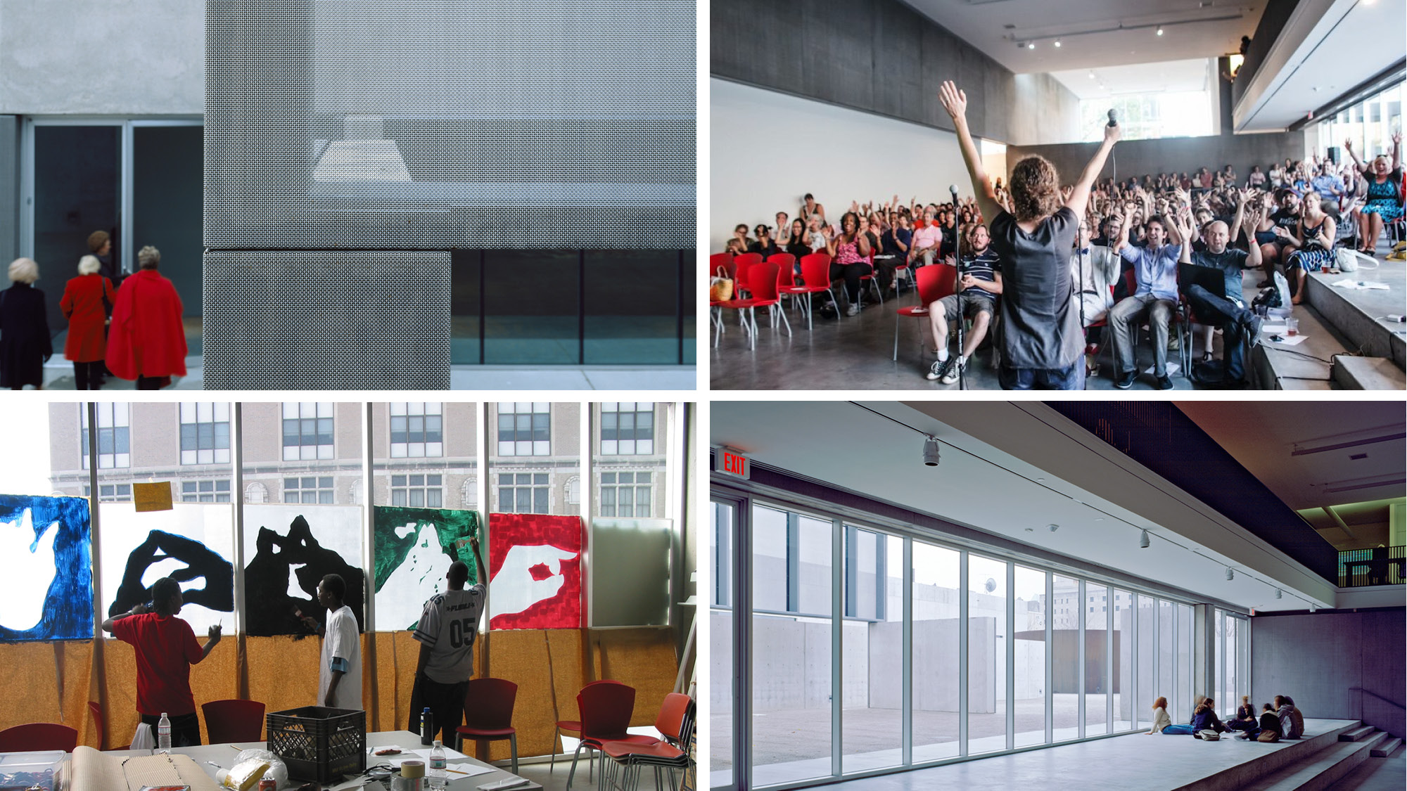 The two-story, 27,000 s.f. museum provides open, flexible space for exhibitions and programs while emphasizing transparency at ground level. Two intersecting ribbons of concrete and steel mesh weave and overlap to define the principal volumes. The lower walls bound the museum and create a series of large interconnecting galleries. The upper walls span above the galleries, providing spaces for administration and education. Ceiling planes are held at varying heights to create variations in scale, proportion and enclosure, providing a diversity of lighting conditions and curatorial opportunities. This building is a simultaneous act of enclosure and invitation, allowing the landscape to flow through the entire site, while tenuously capturing and containing rooms for art.