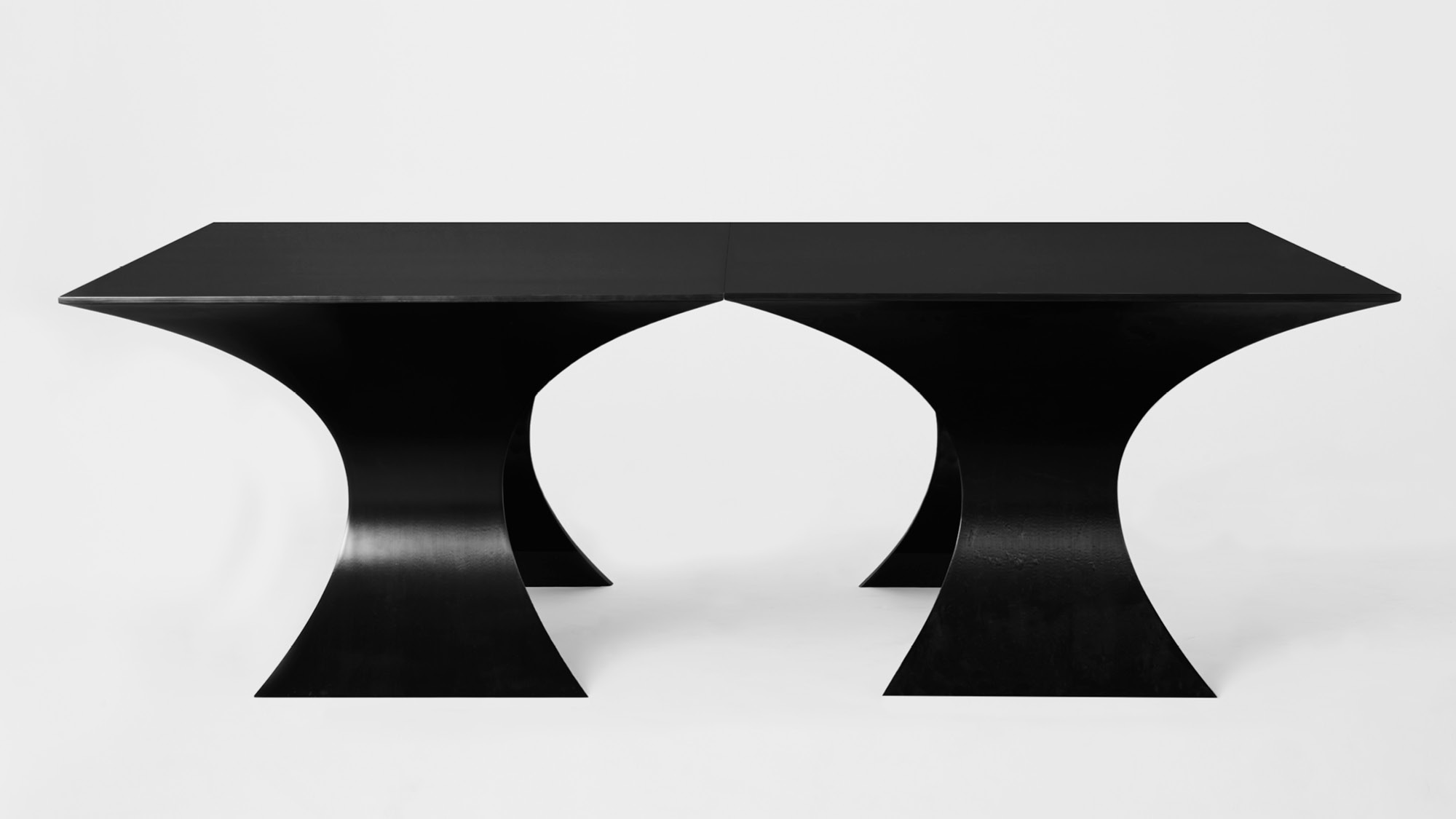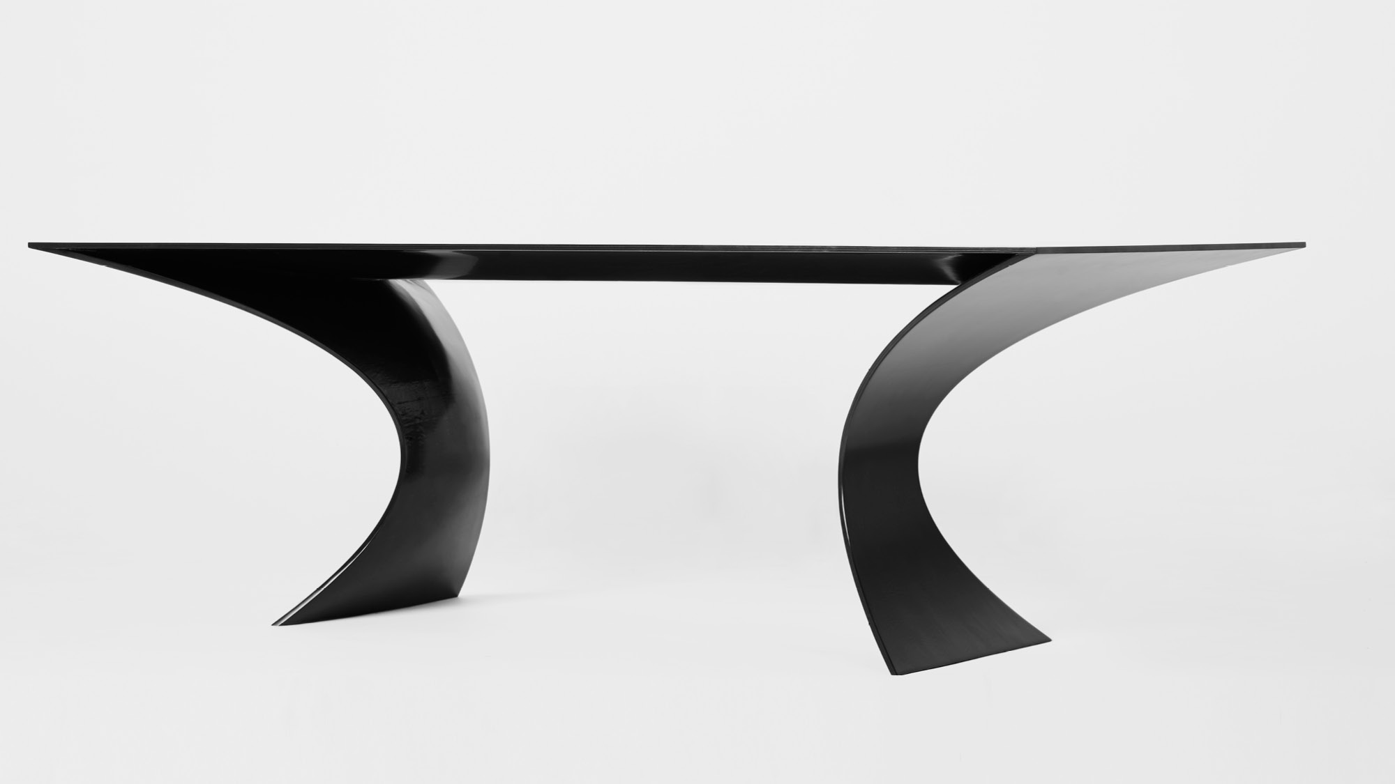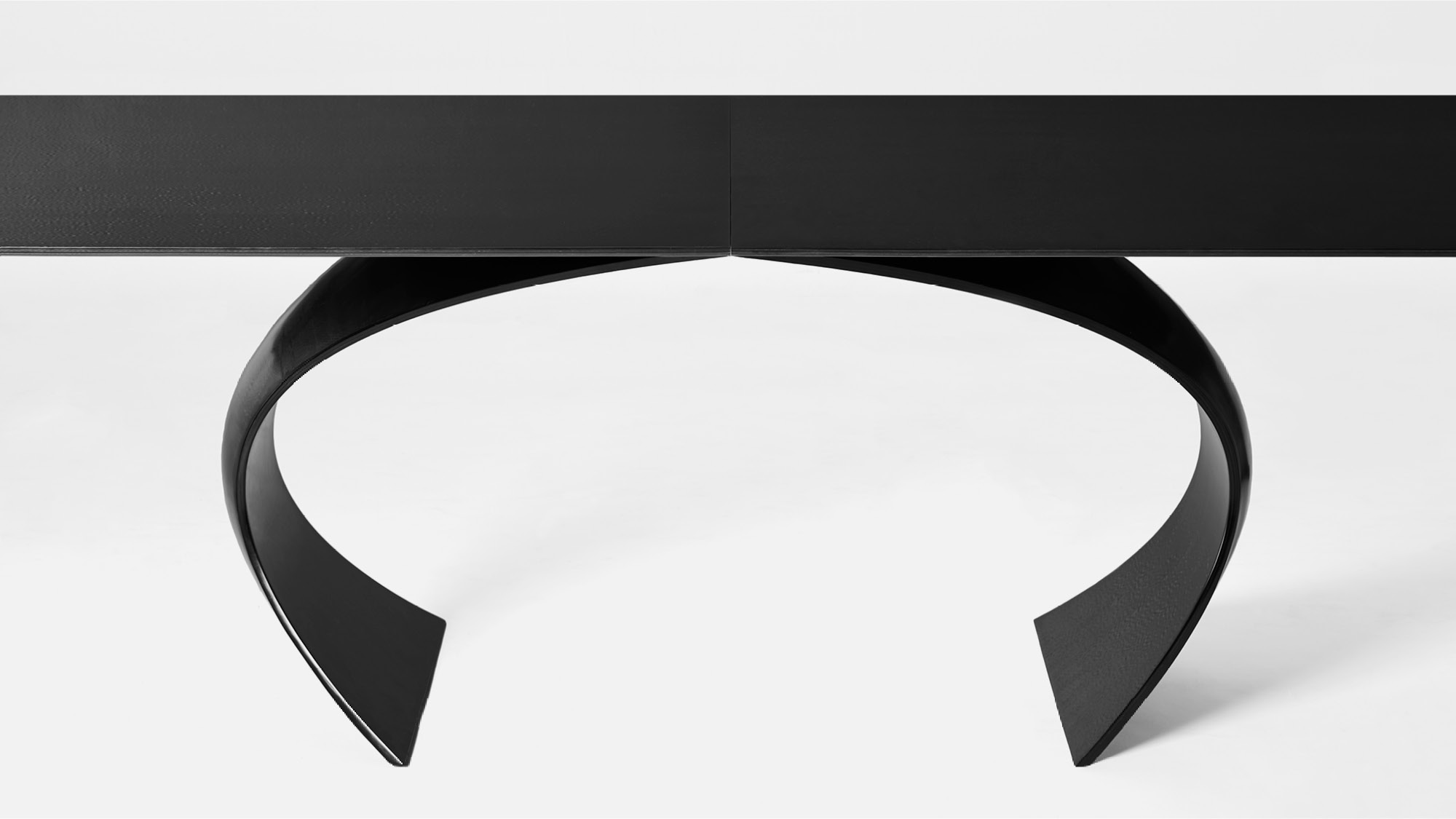 Allied Works was responsible for a variety of custom furnishings and installations. The Carbon Table system, designed for the main house, is a study in the properties and possibilities of carbon fiber construction. Two matched tables may be used independently or paired for large groups. Their taut and sinuous form, their significant spans achieved with remarkable thinness, and their visual depth and richness amplify the inherent traits of the unidirectional carbon fiber fabric. With the balanced forms and the exacting dimensions achieved in fabrication, the tables echo the precision and subtle mirroring of the main house, yet stand as complete pieces on their own.