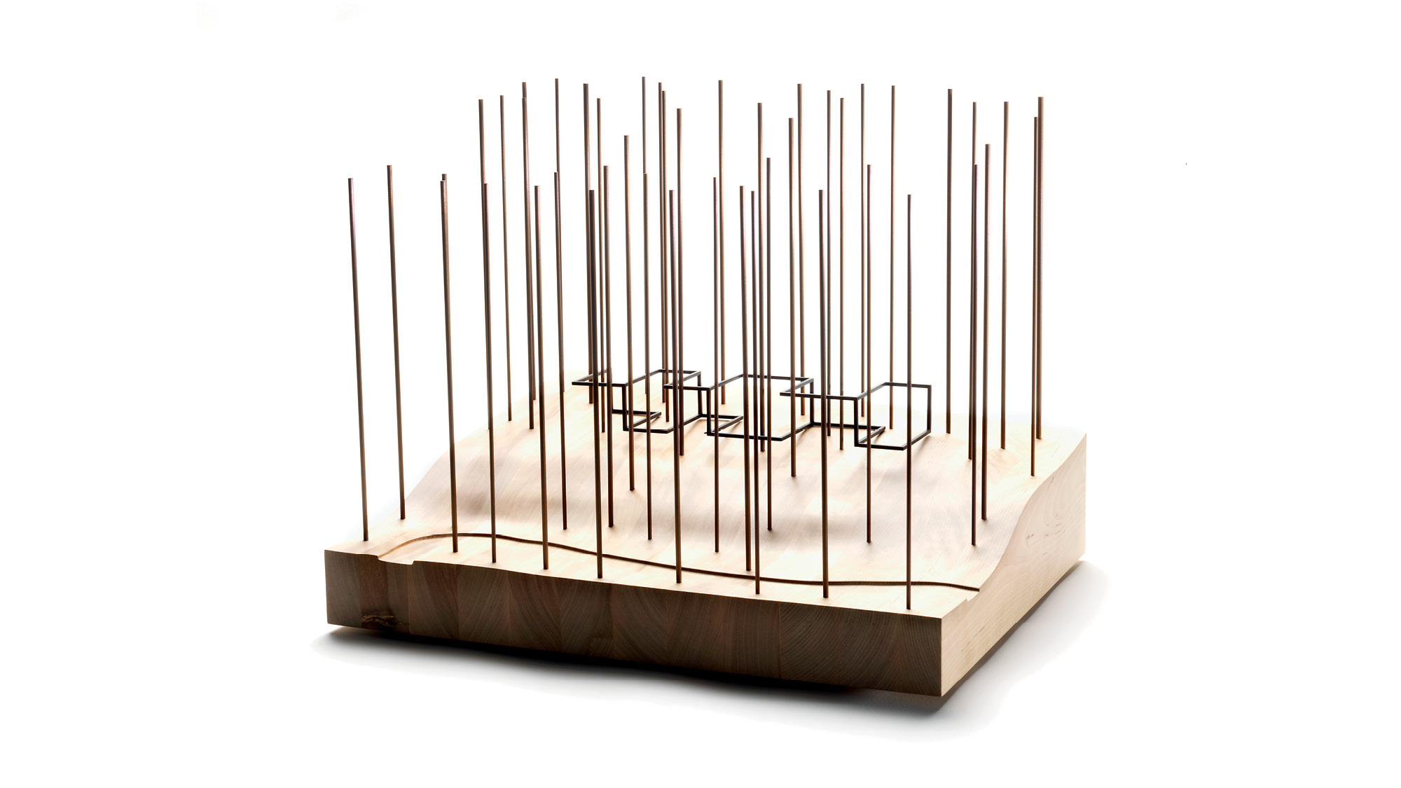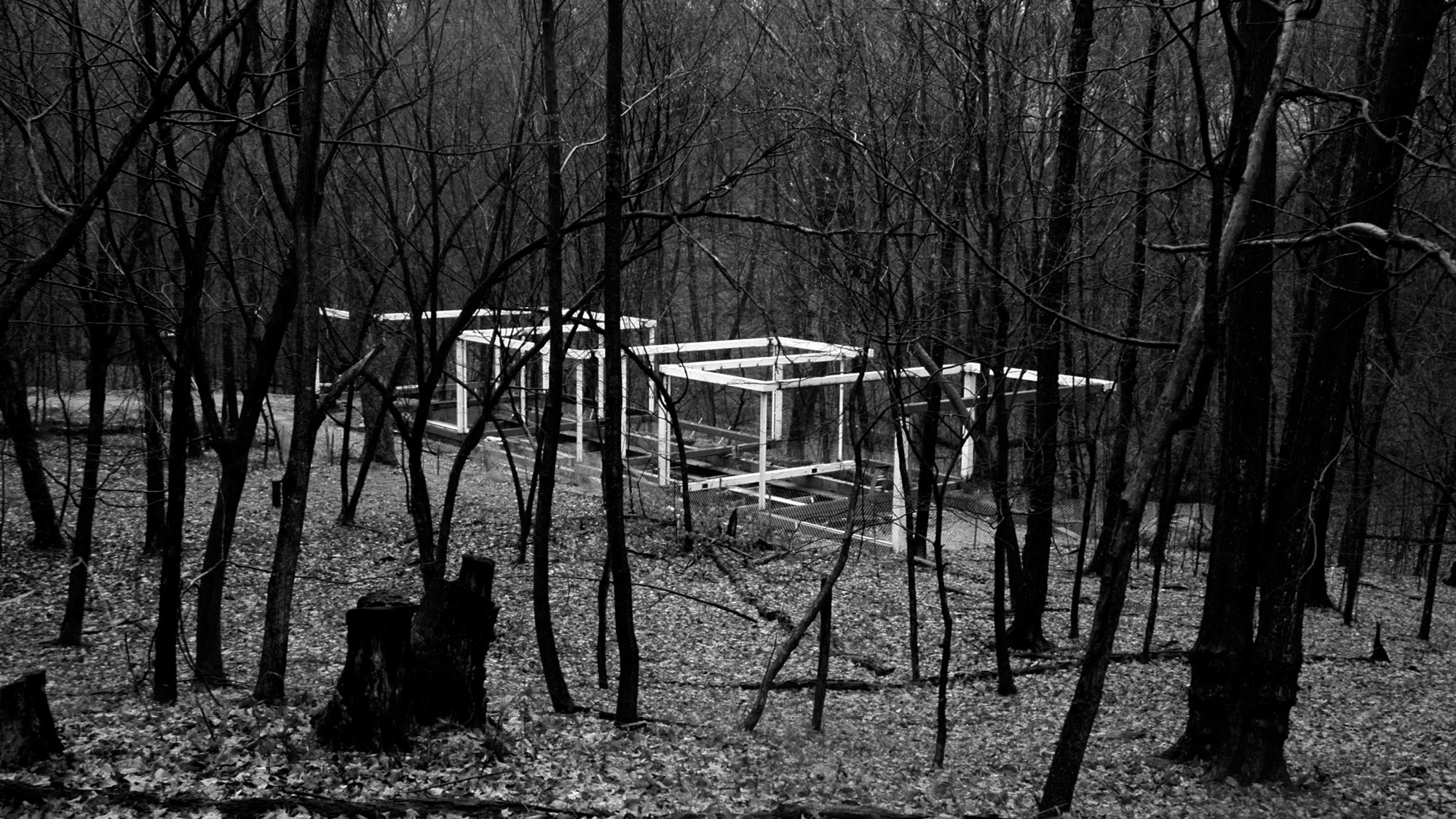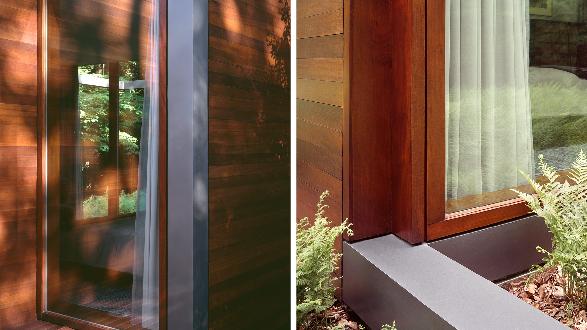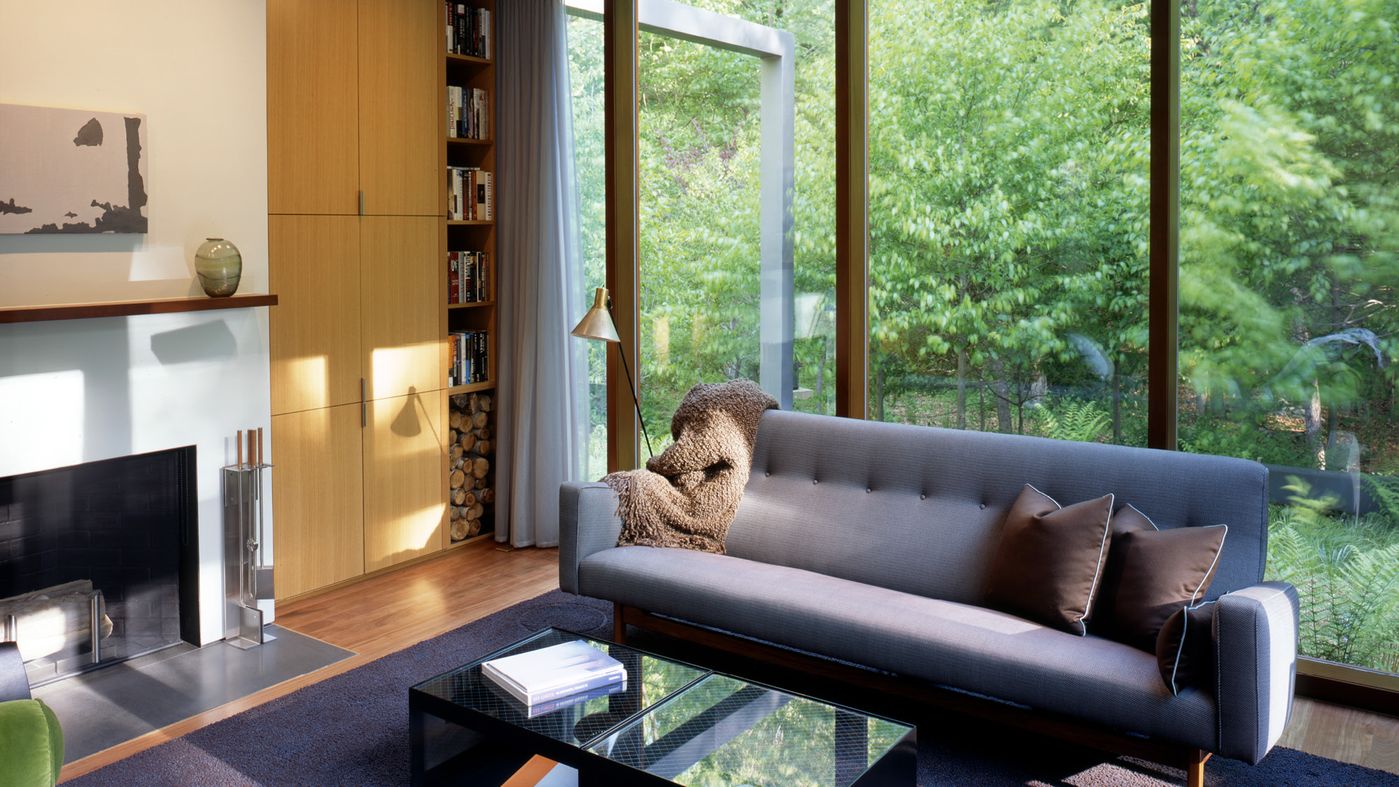 Balanced on the slopes above Ryder Creek, the house is located in a mature forest of oak, hickory, and birch. It is a place of silence, reflection and intimacy, reached by a long path from the main clearing. A continuous steel frame weaves through the woods and understory, blurring the boundaries between forest and dwelling. Panels of mahogany and floor-to-ceiling glass slip between, over, and through the frame as it meanders among the trees, leaving terraces and voids as spaces of transition and connection. The house is a place to escape the pressures of the city, and a platform for experiencing nature and the dramatic change of seasons.