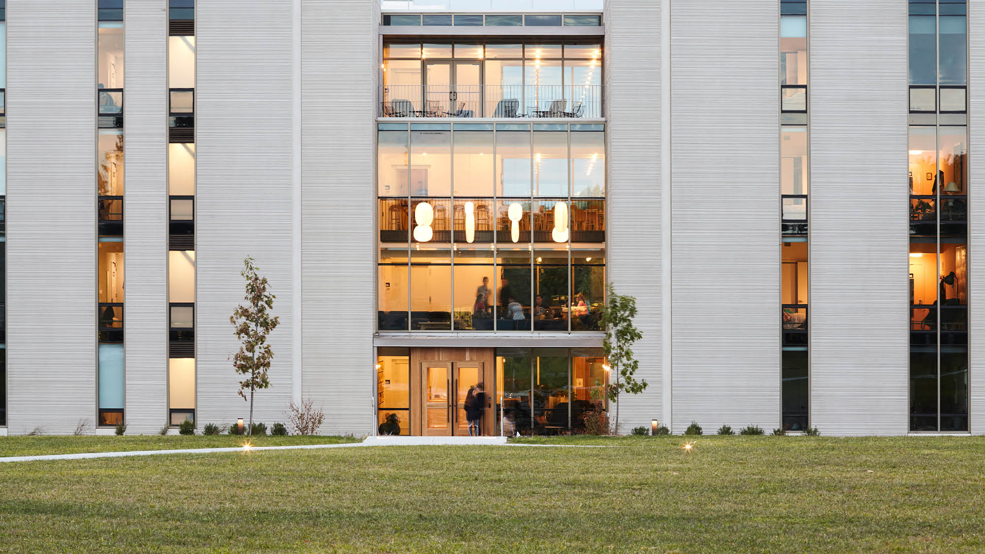Sited on a hill adjacent to an existing classroom building, the new residence transforms a former parking lot into a new landscaped quadrangle. The open space creates a social center for the campus while engaging the surrounding landscape. The 250-bed residence hall is planned around small-scale living groups, allowing for students to have a feeling of home and community. The facility contains social and study spaces of multiple scales, accommodating various group and individual activities. All interior spaces are filled with abundant daylight, provide views of the surrounding hills and Hudson River Valley beyond.