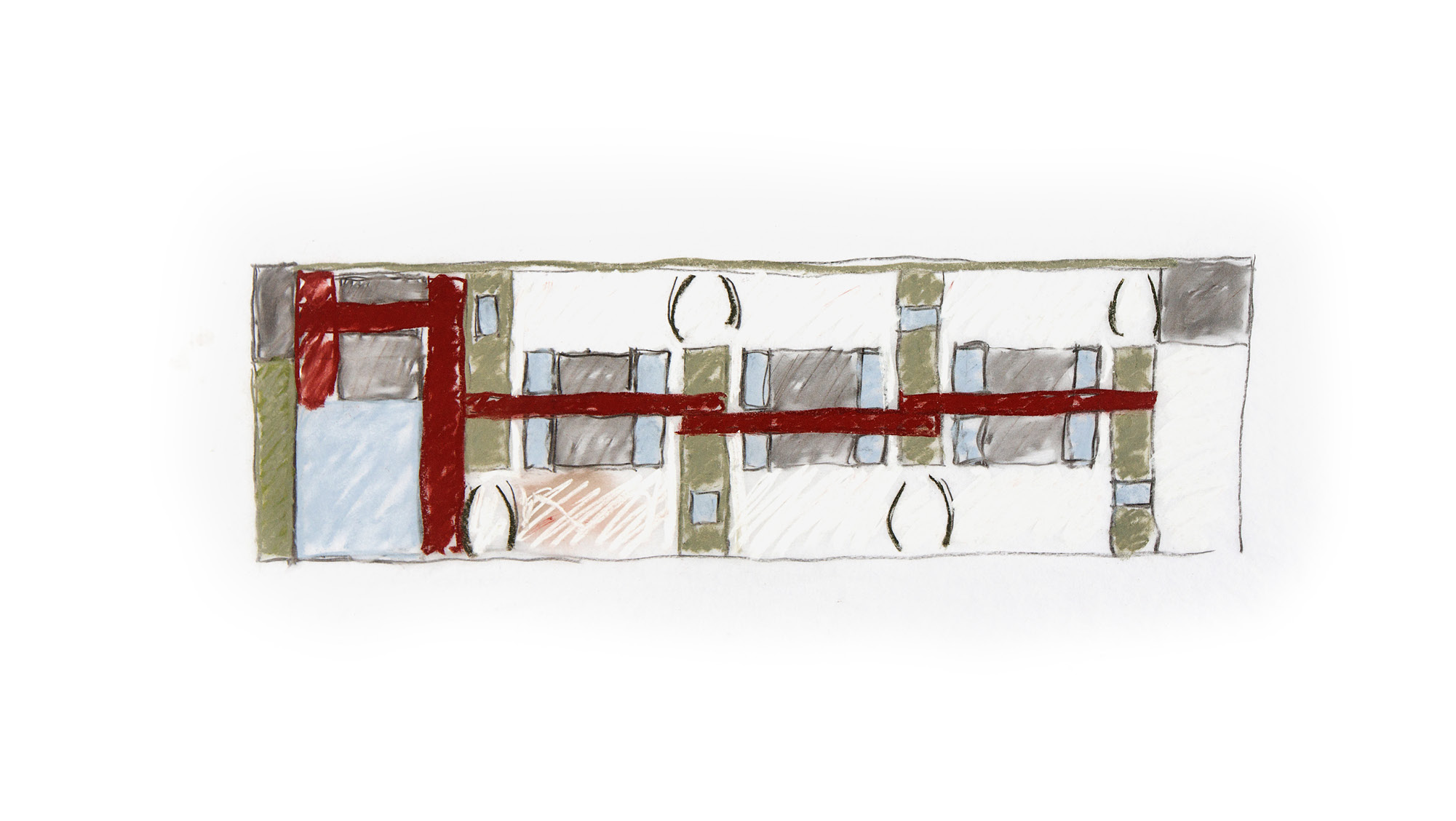 The design concept draws from the energy and organizational logic of the city. A meandering interior street runs the length of the workspace, punctuated by social spaces and interior courts that provide areas of intimacy, reflection and connection to the elements. Shared resources, meeting rooms, resource libraries, digital information hubs and other social amenities are directly connected to the street, and create thresholds to a suite of design and production studios for individual working groups. The work lofts may be rapidly reconfigured to address shifts in product development. Both the street and the social spaces allow employees to be seen and interact in new ways, and equally, remain connected to the world outside and the ever-changing landscape of fashion.