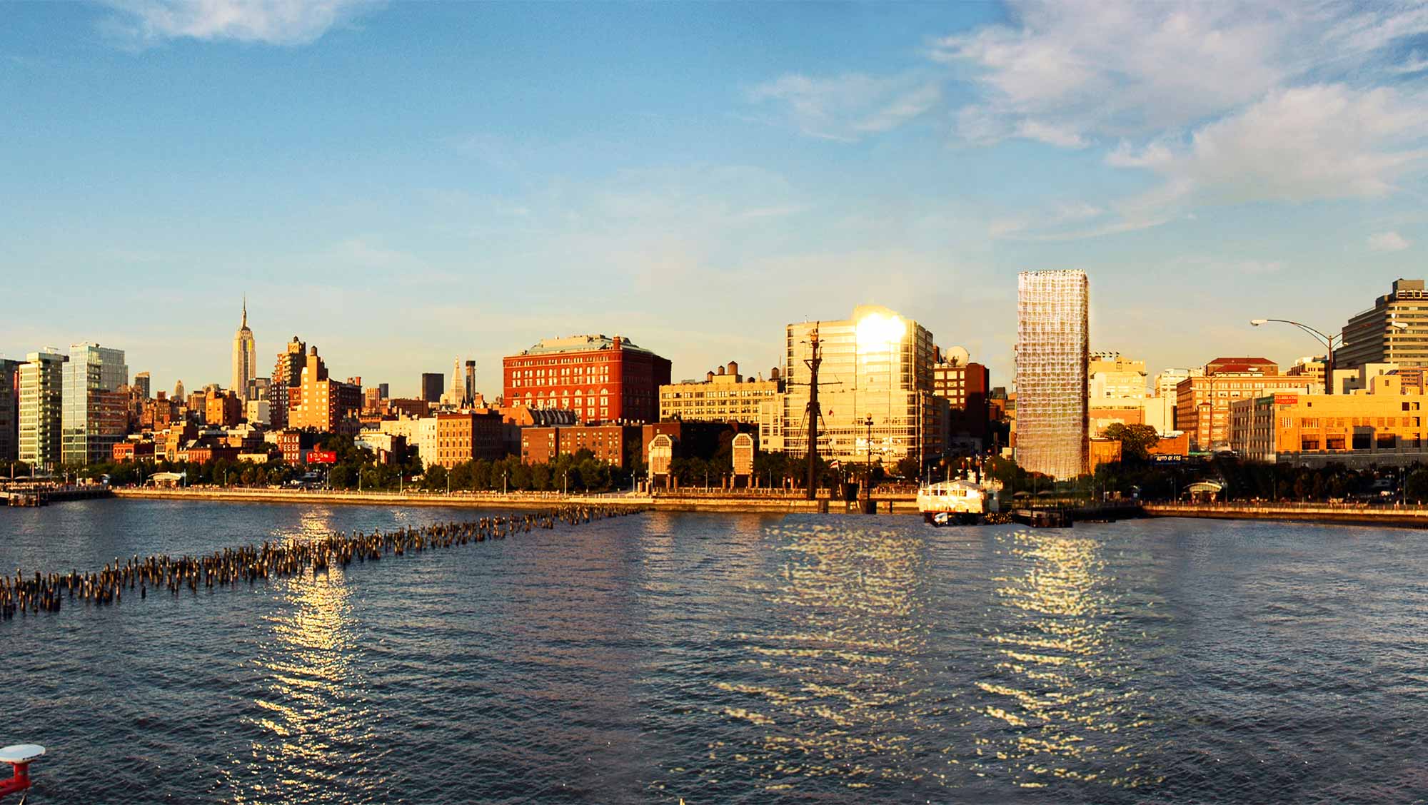 The design recalls earlier traditions of cast iron and terra cotta architecture in the city, and addresses the unique character and light quality of its west-facing, waterfront site. The simple tower form is enclosed by a layered structural frame that allows for shading, relief and interplay between interior and exterior space. Within, the free-plan allows for diverse room types and configurations. From the exterior, the tower’s form, proportion and material expression creates a new landmark on the lower Hudson, and subtly responds to the light, life and views along the river.