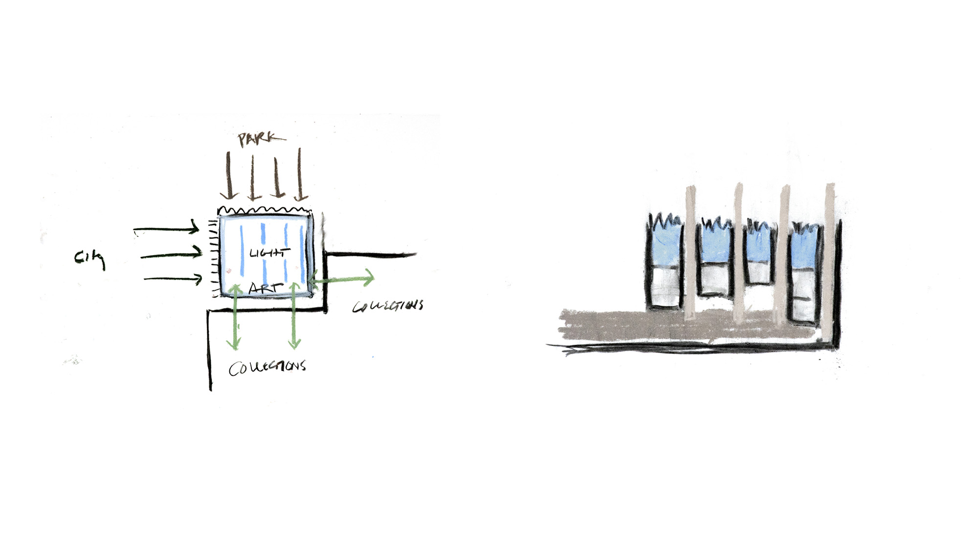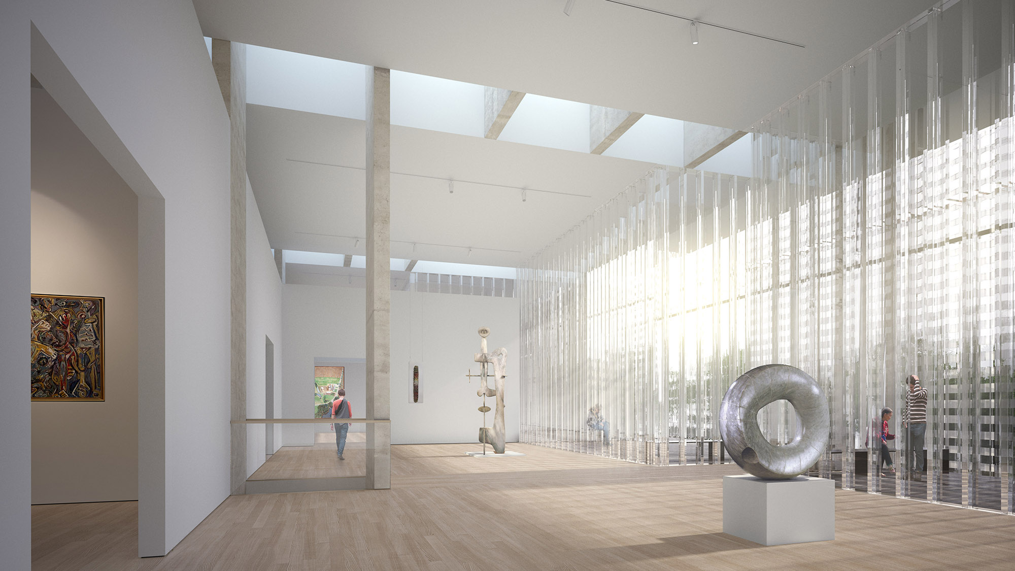 The goal and inspiration is to create galleries of perfect scale, proportion, and light; a varied spatial palette for the installation and experience of the collection. The concept represents the merging of two worlds—the Park and the Museum—with light as the force that binds. First, light follows the force of gravity, filtering down through the open concrete frame and into the galleries below. Second, the facades act as overlook and lens. A series of terraces and overlook galleries offer views into the Park from every floor, creating intervals of reflection and repose in the museum experience. Enclosed in a veil of translucent and transparent glass, the facades filter and shift light, lending new energy and visual connection.