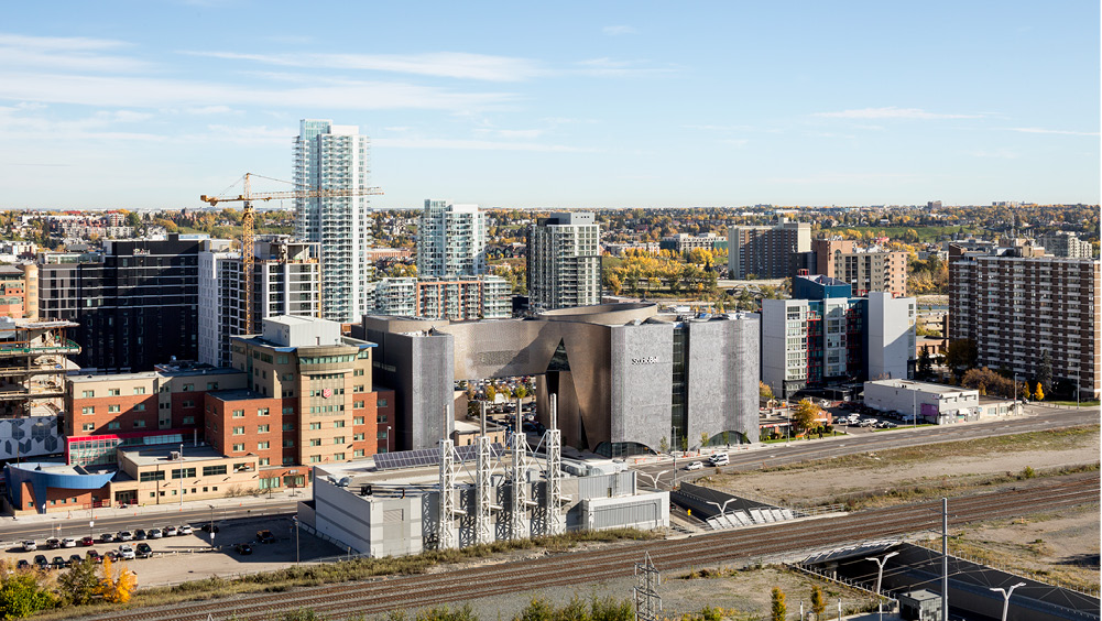 The National Music Centre is a new cultural institution dedicated to the music of Canada in all of its forms. The NMC is equally a museum, performance hall, interactive music education center, recording studio and broadcast center. Sited opposite the Stampede Grounds in Calgary’s historic East Village, the new building, along with the restored King Edward Hotel, signals the renaissance of the district and attracts a national and international audience to the city.