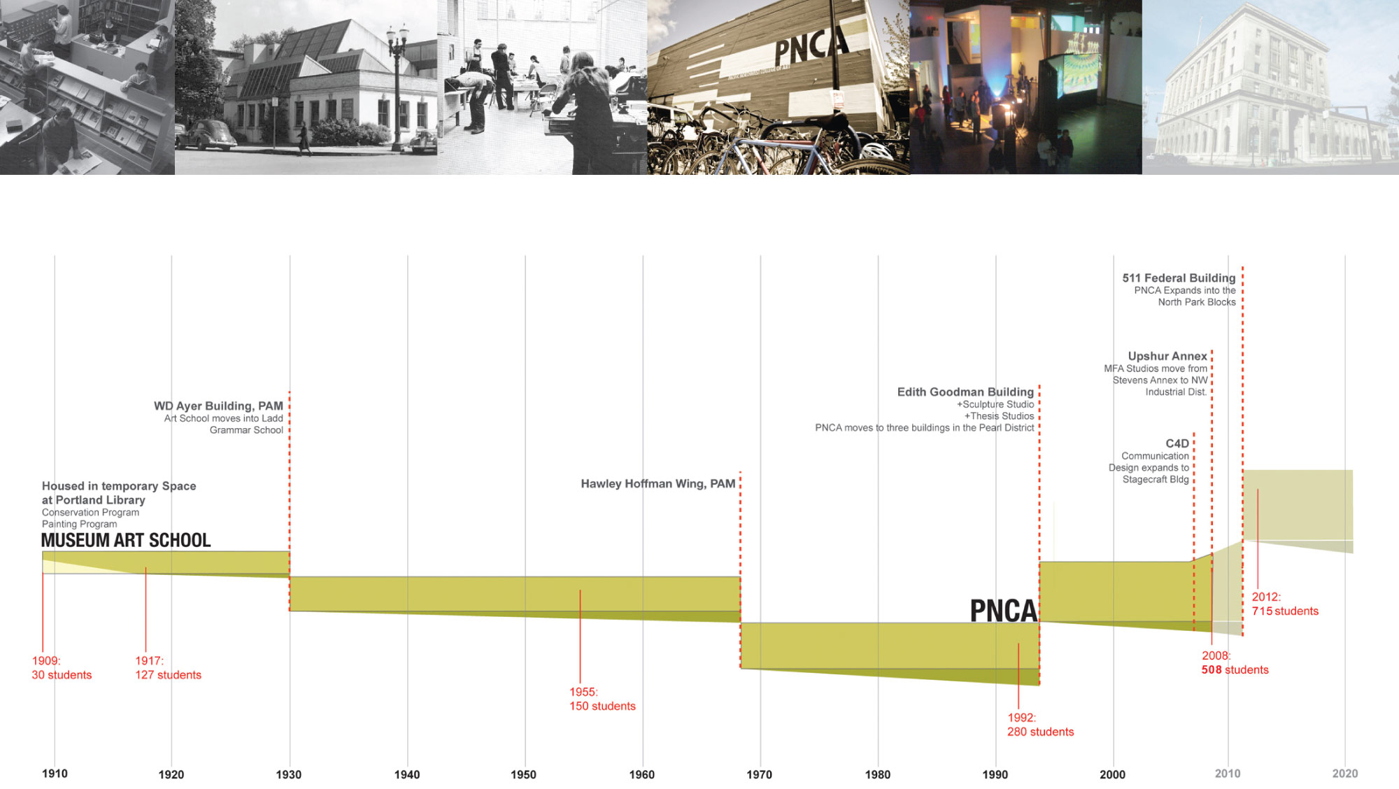 The Pacific Northwest College of Art is a private art college located in downtown Portland. Allied Works and PNCA are working together to plan for the expansion of the institution and its programs, and to establish a long-term vision for the school that accommodates its physical growth and the addition of new programs.