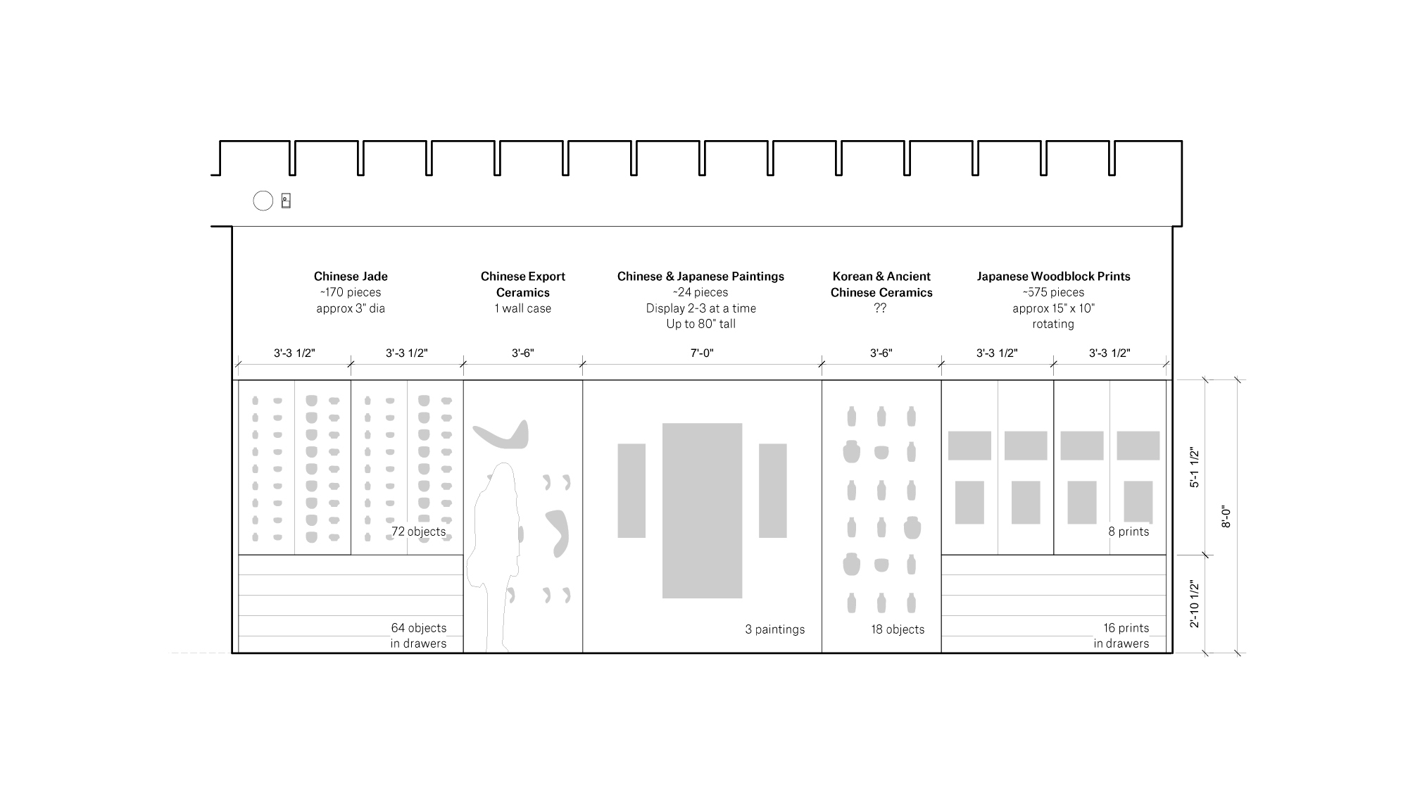 A series of exhibit furniture typologies and specifications were developed in-house, ranging from pedestals and platforms to display tables with integrated drawers and built-in wall cases. While the design draws inspiration from the architectural materials and detailing of the building, it reinterprets them in ways specific to furniture—articulating a distinct yet complementary visual language.