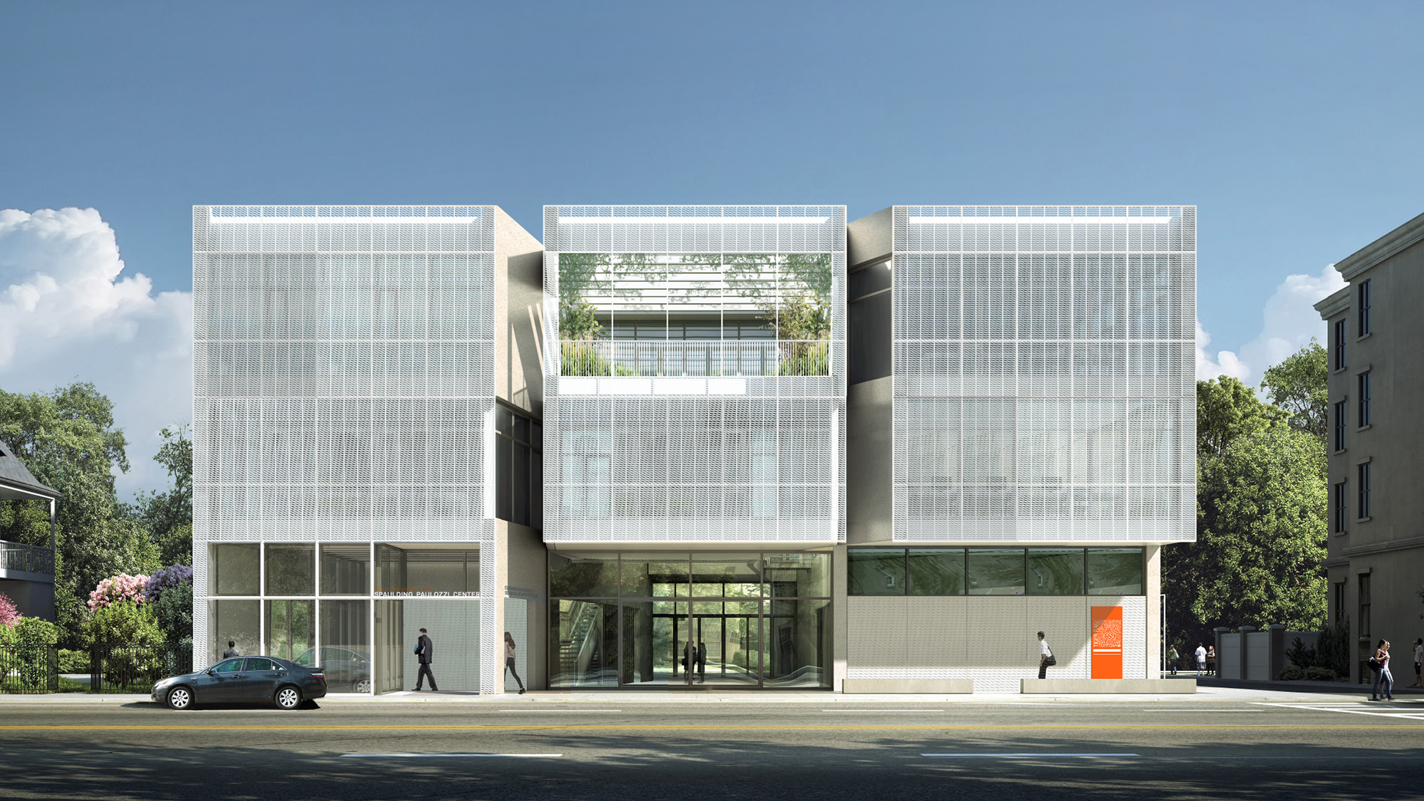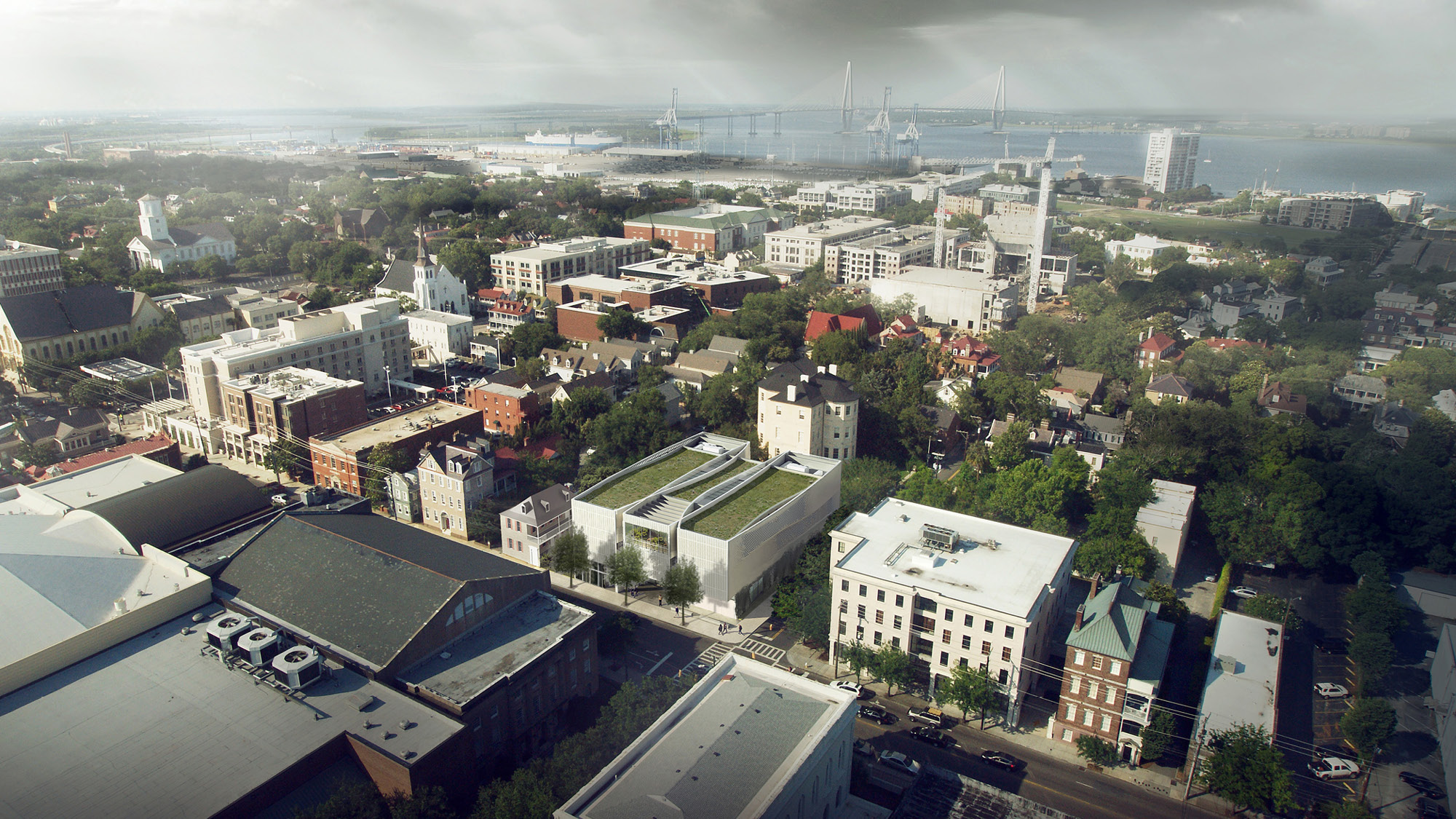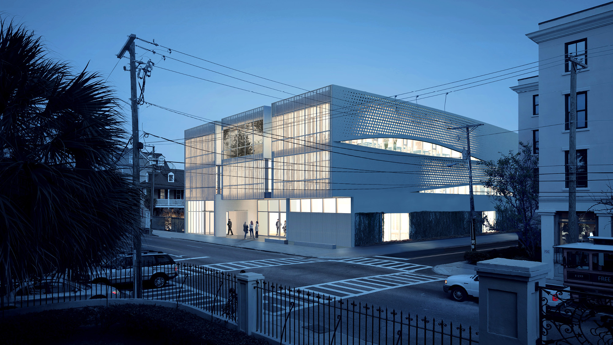Located on a prominent site in the heart of Charleston, the design creates a compact campus of parallel built and landscaped spaces. Three linear building masses will be integrated with an existing historic house and garden, continuing the grain and density of the urban context and creating a form that, like the city’s vernacular architecture, is attuned to Charleston’s history, social and environmental context. A series of overlapping “garden walls” of perforated concrete will be the building’s primary structure, providing illumination, transparency, and the durability necessary to support the creative work housed within. Their oscillating form will provide physical and visual connections between the interior spaces of the building. Exterior roofs and walls will support native vegetation and integrate local craft traditions into a design that is materially, visually, and spatially connected to the life of the city.