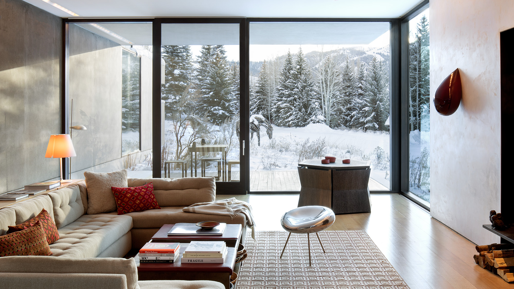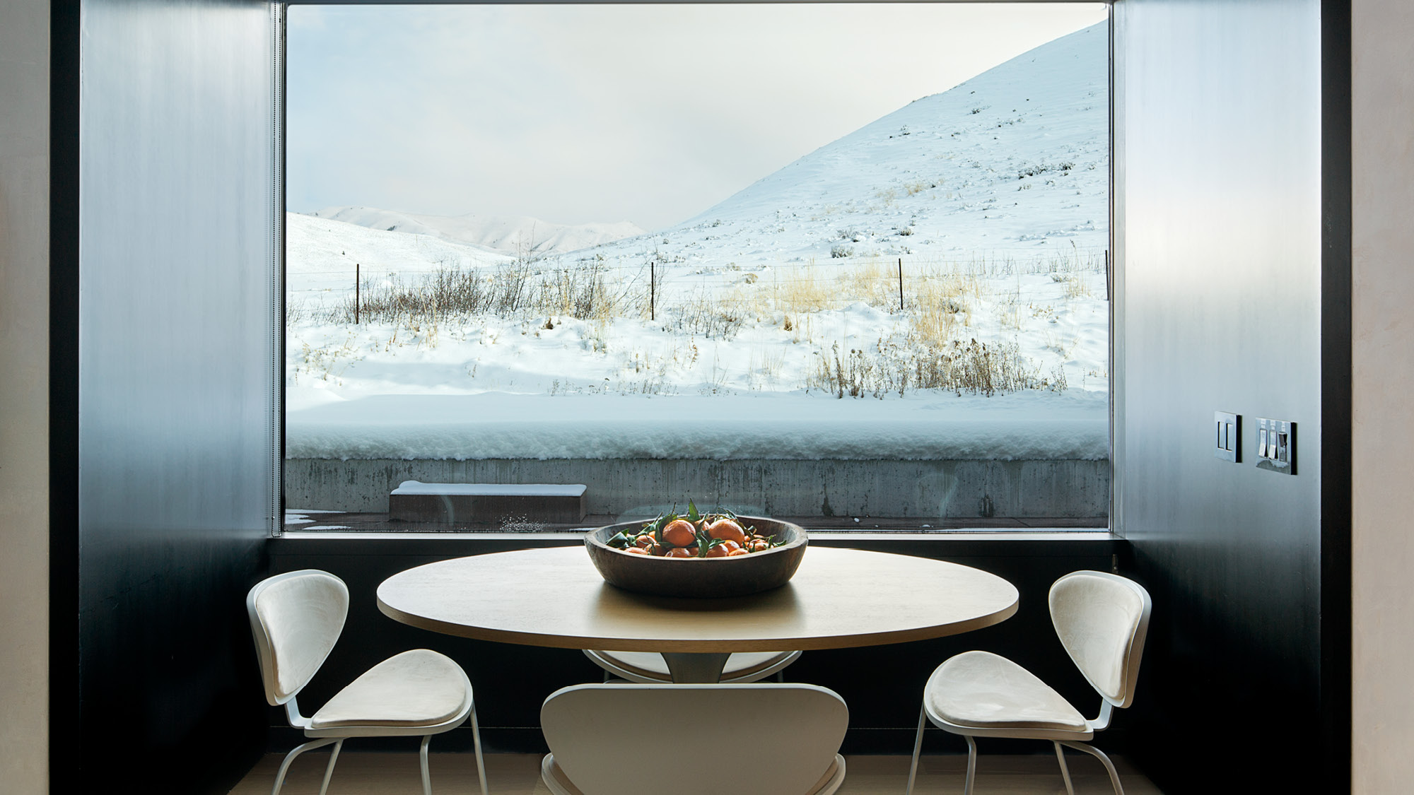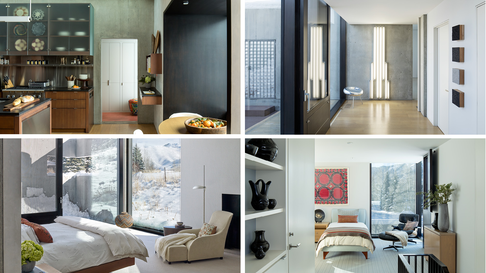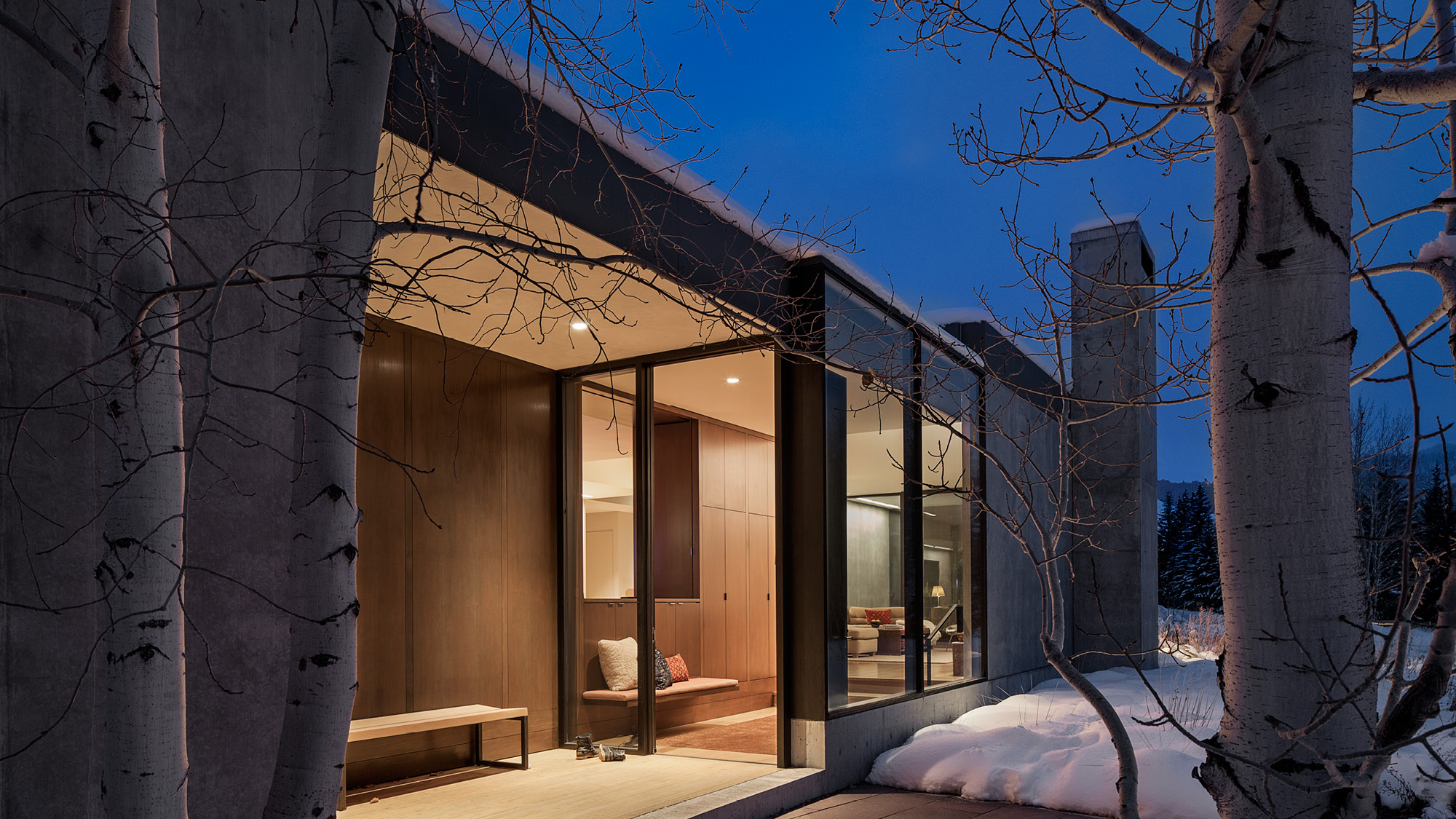 The Sun Valley Residence is a retreat for a San Francisco-based arts patron and her extended family, located in on the edge of Penny Hill, among sage pastures and aspen trees on the outskirts of Ketchum, Idaho. The family asked for a contemporary house that would nestle into the landscape. The residence is equally a comfortable home, a refuge from the elements, and a beautifully carved frame for experiencing nature, both up close and outward to the surrounding Sawtooth Range.