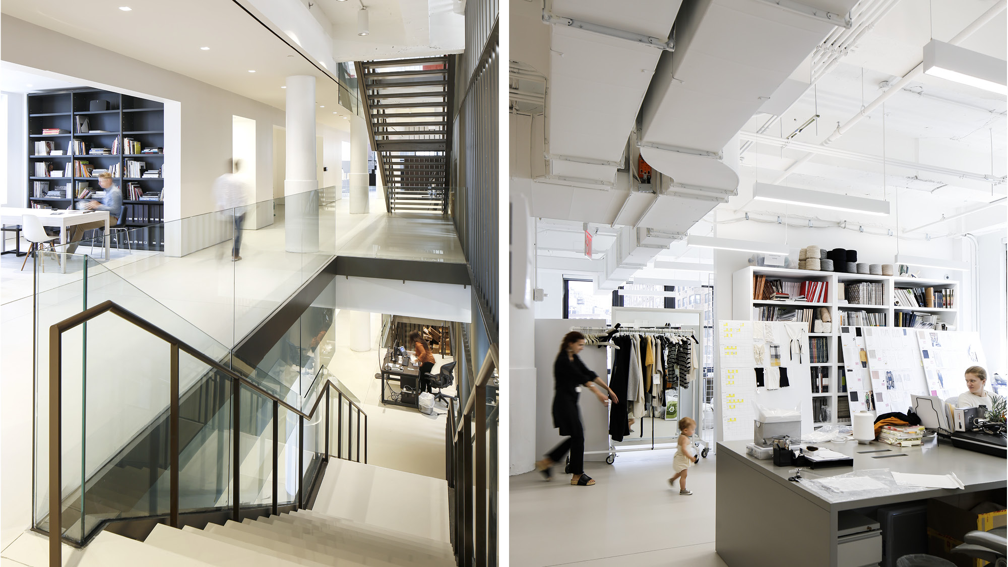 Fashion labels Theory and Helmut Lang teamed with Allied Works to create a new design studio in a 1920’s industrial building in Manhattan’s Meatpacking District. The space brings together workers previously spread across the city, and combines studios, prototyping facilities, and showroom space with new areas for exhibition and client engagement.